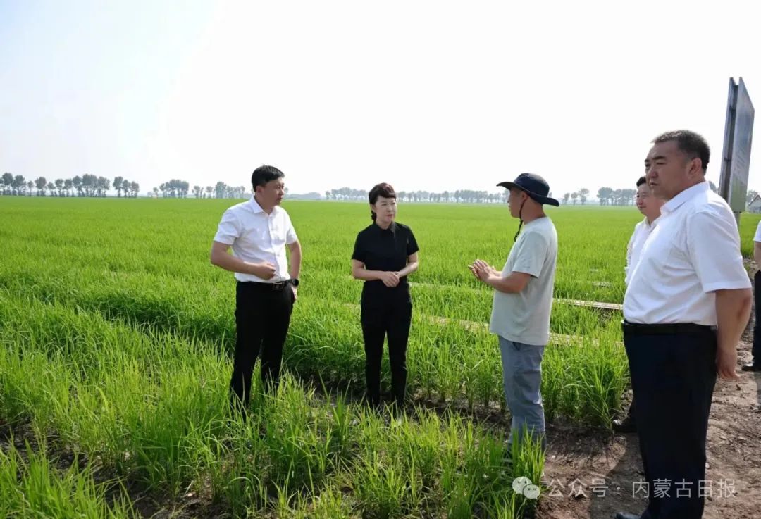 扎赉特旗国家现代农业产业园水稻长势良好,王莉霞走进田间地头,与种植户深入交流,详细了解旱稻种植生产和稻农收入情况,鼓励经营户在规模化、产业化、品牌化上下功夫,培养能人、培育品牌,让好东西卖上好价钱,让当地老百姓得到更多实惠。她走进产业园实验室,向科研人员了解农业科创和成果应用情况,当了解到水稻生产各环节都应用到了数字化技术,她高兴地鼓励科研人员把论文写在大地上,用科技赋能农业现代化。