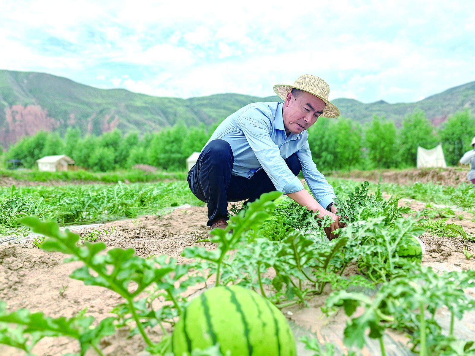 致富带头人在布尔塘瓜田。牛玉娇闻皓摄在海东市循化撒拉族自治县查汗都斯乡大庄村,有一片名为“布尔塘”的山区,7月4日,我们沿硬化路盘旋上山,一路上都是大西北常见的土山坡,一到山顶,一片栽满树、开满花的广阔天地呈现在眼前,仿佛“世外桃源”。