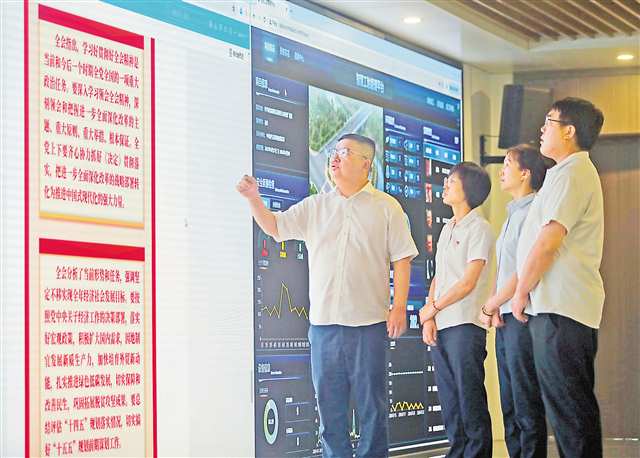 7月22日,重庆市传感器产业园智慧服务大厅,中国铁建的工作人员正在学习党的二十届三中全会精神,并结合实际工作展开讨论。记者 罗斌 摄/视觉重庆