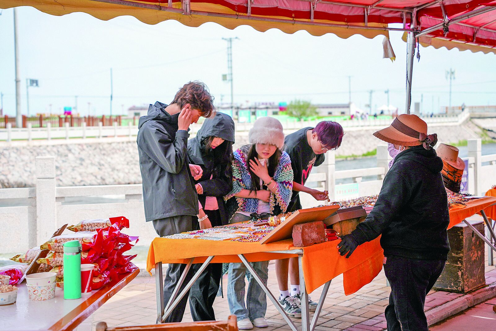 泉吉河边做生意的牧民。吴占云才贡加宋明慧张多钧摄为了营造更好的旅游环境,也为了壮大村集体经济,新泉村在泉吉湟鱼洄游观测点修建了10间小木屋,通过拍租形式租给村民经营。郭永忠说到了一个很明显的变化,去年村民都持观望态度不敢一试,而他大胆一试租了四间商铺,可喜的是一年下来收入非常可观,今年商铺供不应求,一家只能拍租一间,业态较往年更加多元。他家的商铺在黄金地段,相较租金就更高,三个月达到了6800元。