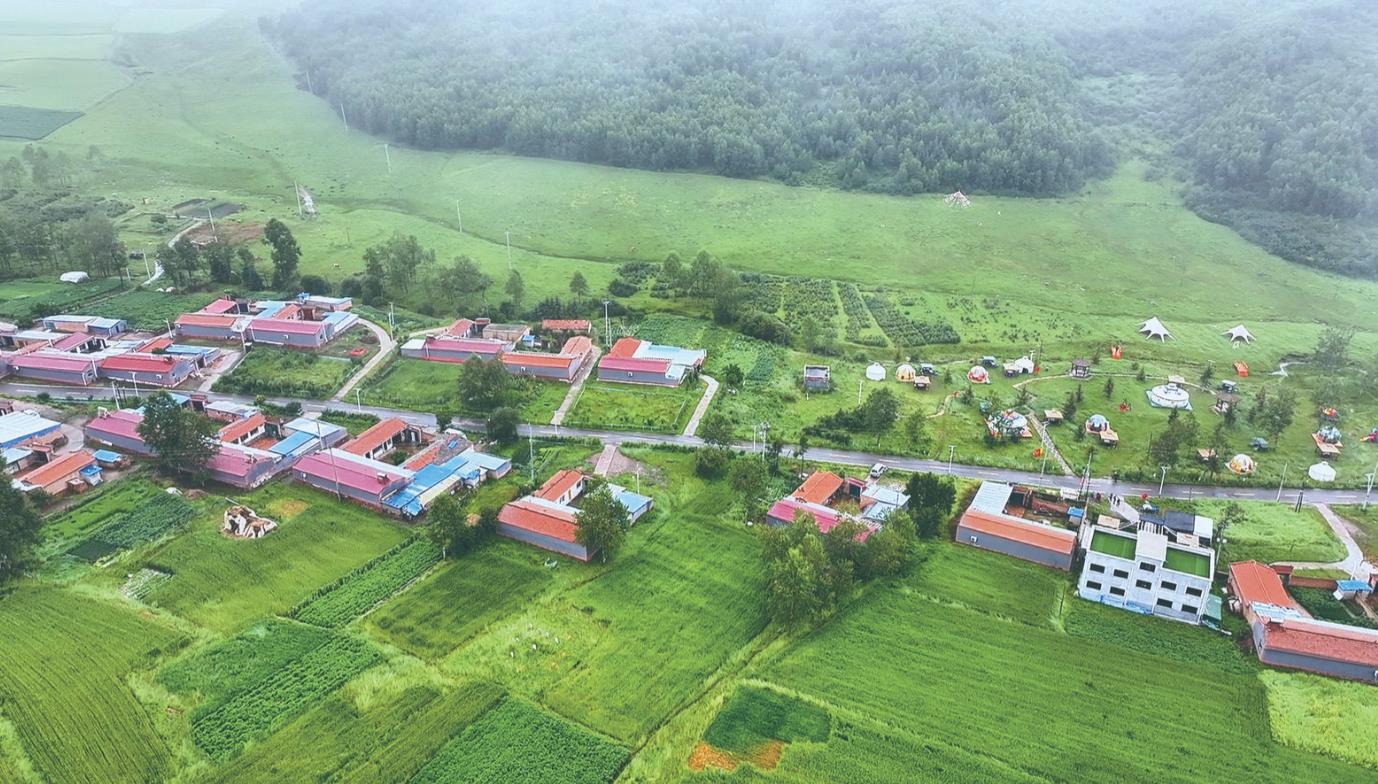 达隆村乡村旅游接待点由达隆山庄(游客接待服务中心)和露营基地两部分组成,达隆山庄是一栋极具农村特色的深褐色小楼,里面设置了厨房、洗手间以及8个供游客用餐的房间。而位于接待中心南侧草地里的露营基地,则由大大小小的亭台、毡房以及星空屋组成,在小雨中与周遭富有诗意的环境相得益彰,融为一体。