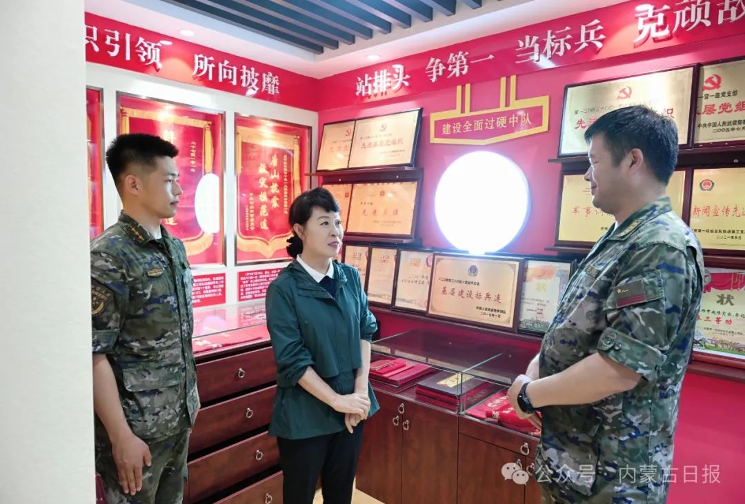 王莉霞走进支队荣誉室,在每一幅照片前驻足,详细了解支队在抗日战争、解放战争、抗美援朝及和平建设各个历史时期的战斗故事和英模事迹,和指战员一起重温光荣队史。她勉励支队官兵以习近平强军思想为引领,赓续尖刀精神,刻苦训练,守护好一方平安;要求地方政府强化国防意识,一如既往做好支持和保障工作,千方百计帮助部队官兵解除后顾之忧,与驻区部队携手谱写双拥共建新篇章。