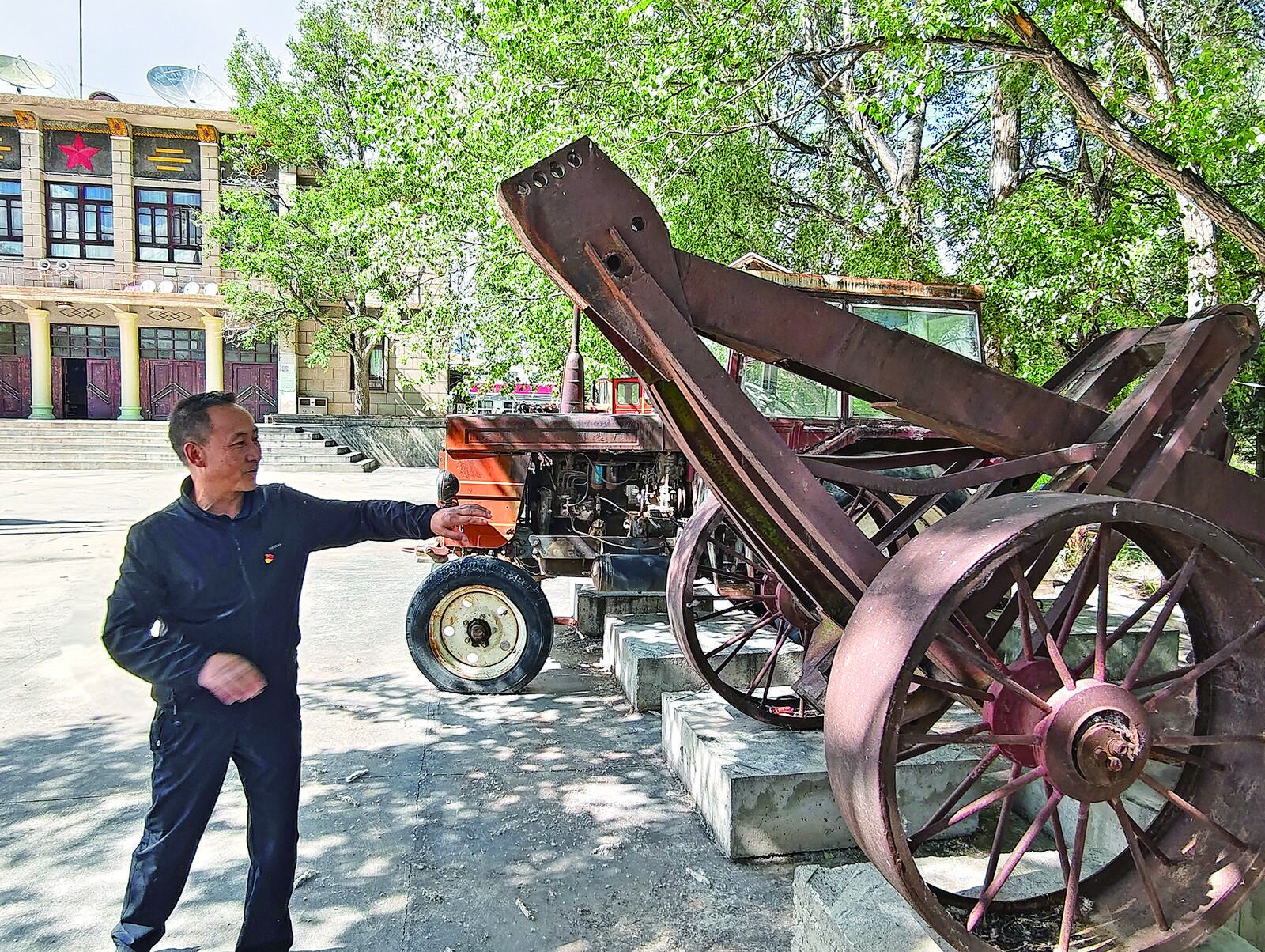 张尚云介绍莫河驼场老一辈职工用过的农垦机械。公保安加摄“记得老一辈驼工说过,当时驼队里有个顺口溜:出谋定计孙兆存,胆大心细马维雄。”张尚云说,从这个顺口溜里可以得知,外公是一名充满勇气且心思缜密的人,他之所以能在那次艰巨的任务中担任小队长,是具备了相匹配的能力。
