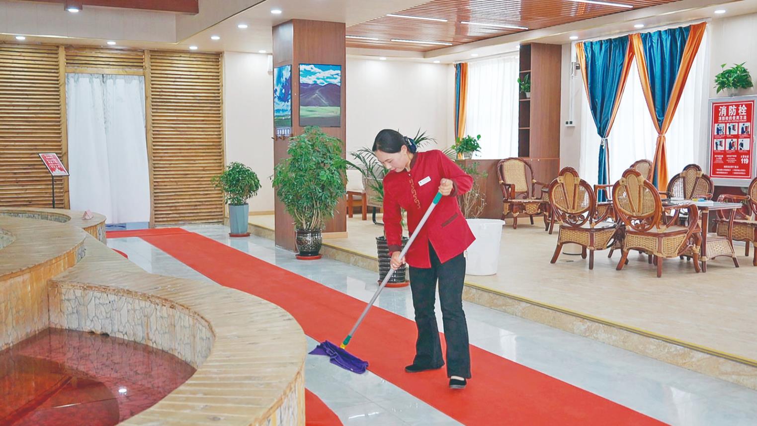 今年,通过改造后的温泉酒店拥有客房19间,还增加了餐饮项目,带动村里畜产品销售,同时带动村民增收。“现在客房还是太少,满足不了旅行社、旅游团的需求,为此,我们引导村民发展牧家乐,游客可以自由选择,体验藏族风情。”昂秀拉夫旦说。