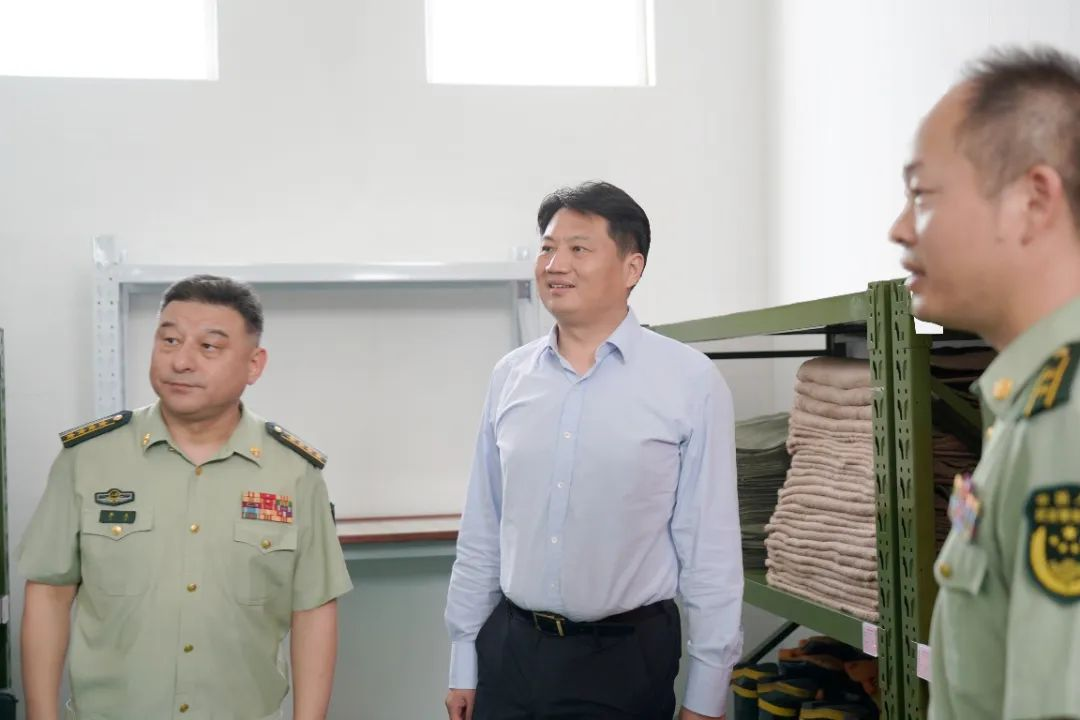 姜冬冬一行来到武警上海总队执勤第三支队某中队,参观了解部队值班备勤、防汛物资储备、官兵文化生活情况,听取了当前部队建设情况介绍。姜冬冬代表区委、区政府对驻区部队官兵为普陀发展作出的贡献表示感谢,对部队在加强军地合作和自身建设方面取得的成绩表示祝贺。他表示,近年来普陀统筹推进经济社会发展各项工作,各项事业取得了新进展、新进步,这些成绩的取得与驻区部队官兵的鼎力支持密不可分。希望部队在保证日常执勤训练有序进行的同时,注意防暑降温,普陀将坚持立足“部队所需、军民所盼、普陀所能”,扎实做好双拥工作,不断巩固军政军民团结良好局面。