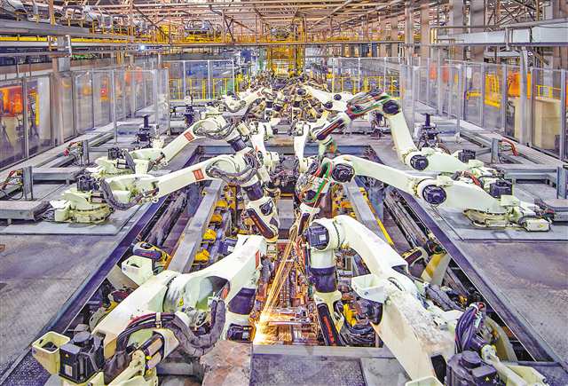 长安汽车两江工厂二厂区焊接车间,机械臂正在精准焊接。(资料图片)记者 郑宇 摄\视觉重庆