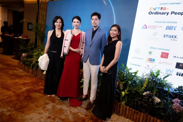 活动现场Robotimize团队在印有32家国际品牌LOGO的背景墙前接过双环奖杯。集团创始人身着深红色礼服,与新加坡政企代表同台而立。背景大屏幕“Uniting For Good”橙色标语与地面棕黄色纹理地毯交相辉映,呼应着品牌“以技术激活善行”的核心理念。