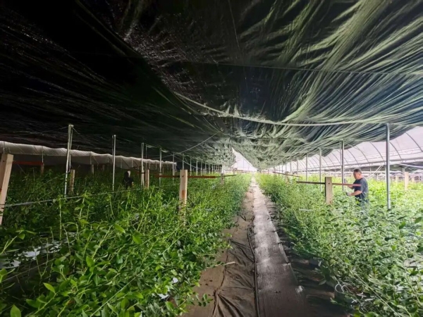 在云南澄江高原数字化现代蓝莓园区,雷马定制的专用膜实现了高透光率与高雾度值的平衡,使蓝莓品质与产量显著提升。