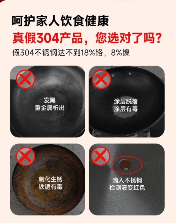 在消费升级与健康理念深度普及的当下。厨房厨具的安全性、环保性成为亿万家庭关注的核心焦点。不锈钢厨具凭借耐腐蚀、易清洁、使用寿命长等突出优势,已逐渐取代传统材质厨具,成为现代厨房的主流选择。然而,市场上部分不良商家以次充好、假冒伪劣的现象仍时有发生,非食品级不锈钢厨具在高温烹饪中易析出重金属,严重威胁消费者的饮食健康。