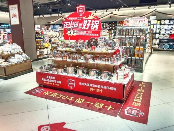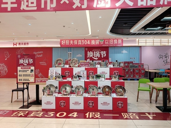 事实上,今年10月以来,好厨夫已在多地商超成功开展过同类换锅活动,“一口旧锅抵40元”的核心优惠政策一经推出便广受好评。这一惠民举措不仅让消费者以极低的成本实现锅具升级,更有效解决了旧锅难处理、易造成资源浪费的社会问题。数据显示,此前的区域性活动不仅为合作超市吸引了大量人流,更显著提升了超市整体业绩与厨具品类销量,实现了品牌、商超与消费者的三方共赢。
