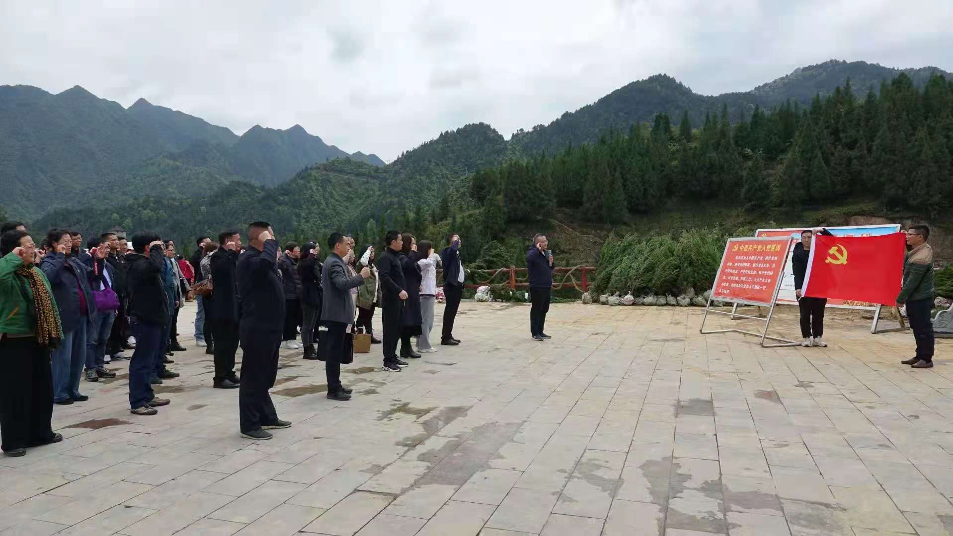 在纪念碑前,全体党员怀着崇敬的心情为革命先烈敬献花篮,并缓步瞻仰红军烈士纪念碑,深切感受革命烈士伟大的民族气节和爱国主义精神。全体党员高举右拳,面对鲜红的党旗重温入党誓词,感悟初心使命,齐唱《没有共产党就没有新中国》革命歌曲。