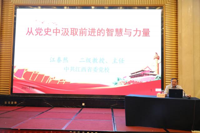 培训期间,全体社会组织参训学员召开“学党史践初心 办实事解难题”主题党日活动,邀请党史学习教育省委宣讲团成员、省委党校党史党建教研部主任,二级教授,研究生导师江泰然作《从党史中汲取前进的智慧与力量》专题辅导。