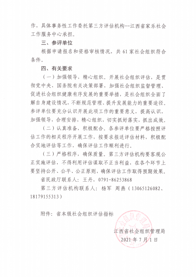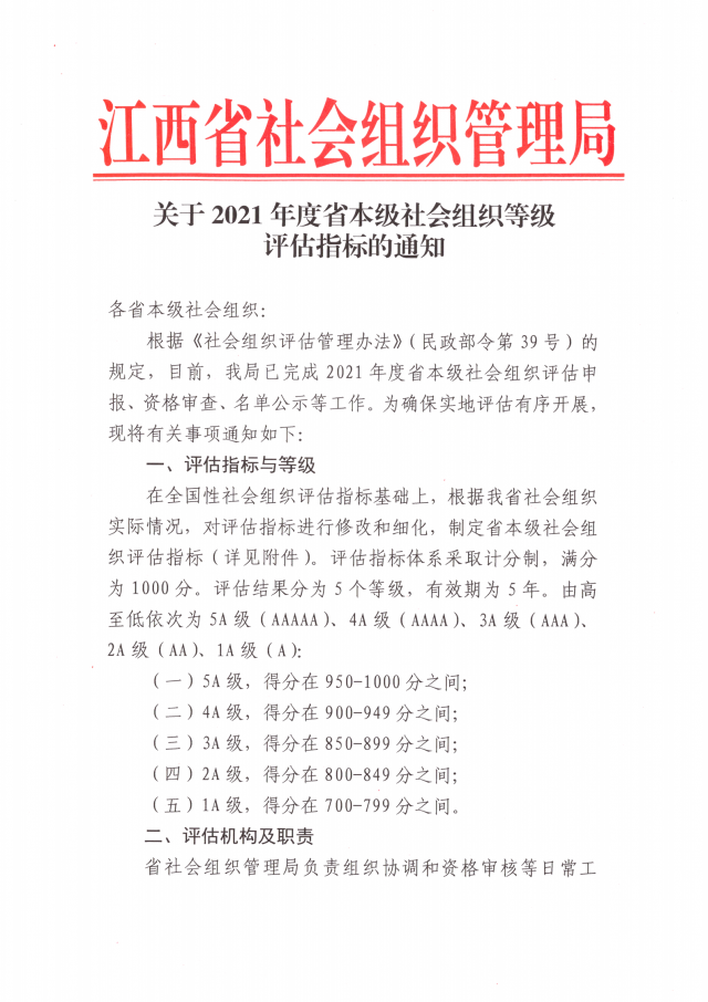 关于2021年度省本级社会组织等级评估指标的通知