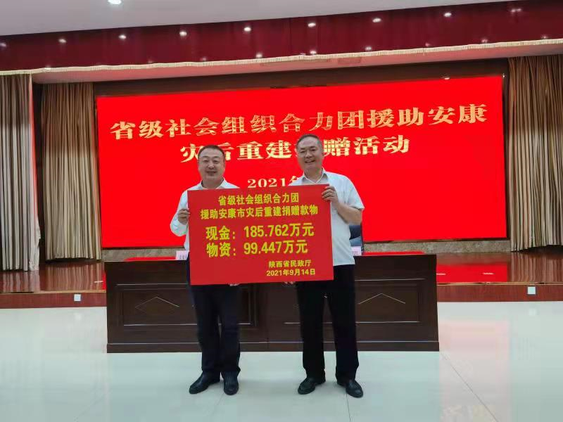 调研期间,郭社荣还参加了省级社会组织合力团援助商洛、安康灾后重建捐赠活动。本次集中募捐活动,省级社会组织合力团共募集资金280余万元,援助物资价值150余万元。