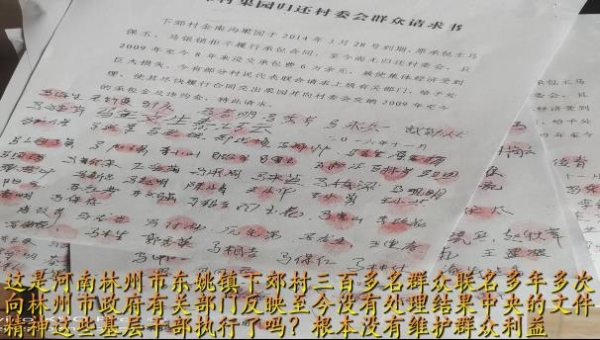 以上证据是河南林州市东姚镇村三百多名群众提供,盼望河南安阳市纪委黄明海书记为切实维护下郊村三百多名群众利益彻查腐败、将犯罪绳之以法,彻查保护伞。同时,此案也要引起河南省政府省纪委的高度重视、由于地方政府保护主义思想严重,多年来群众的诉求一直没有得到解决…