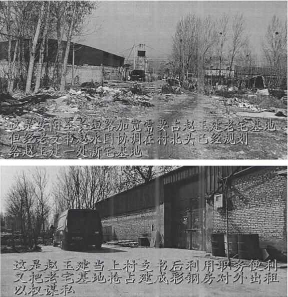 (1)老安阳路至长垣县路加宽时,需要占赵玉建老宅基地,经老支书赵永国协调在村北头规划了一处新宅基地,但老宅基地必须归村委会村集体所有。可赵玉建当上村支书后,利用职务便利又把老宅基地抢占回去,私自建成了彩钢大棚对外出租。