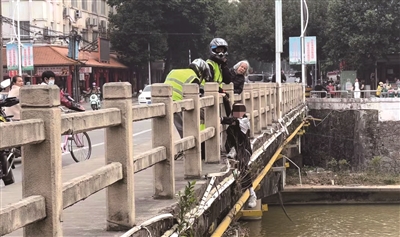 “当时女孩一直在哭,不愿意说话,情绪非常不稳定。”蓝常明告诉记者,当他赶到时,女孩已经站在桥的护栏外,左脚还悬在半空,情况十分危急。他第一反应就是用手紧紧拉住女孩的双手。与蓝常明同行的队友见状,也纷纷停车帮助救援。他们一边用手拉住女孩,一边耐心地开导她,并拨打了110报警电话求助。蓝常明担心女孩有可能会摔下去,便奋不顾身地翻越护栏托住她。过了几分钟,女孩在大家的安抚下,情绪逐渐稳定。众人便齐心协力将女孩从护栏外抬回了安全的桥面上。