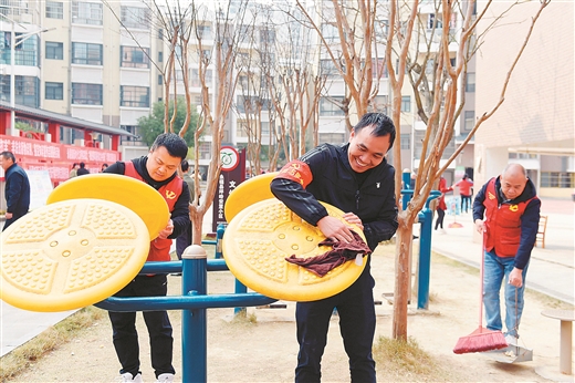 3月2日,在永福县永福镇坪岭易地搬迁安置小区,党员干部和志愿者正在清洁公共设施。在学雷锋纪念日到来之际,该县开展种类多样的志愿服务活动,以实际行动传承雷锋精神。李忠波 李小林/摄