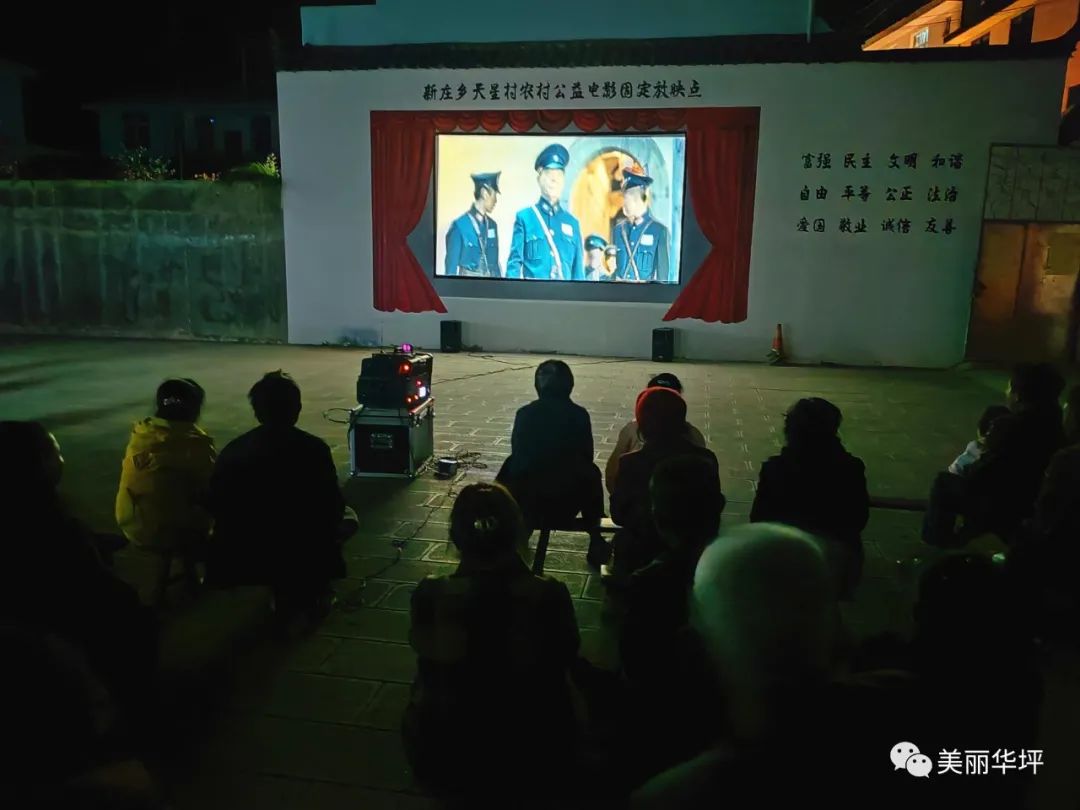 夜幕降临,丽江市华坪县新庄乡天星村农家书屋前的院子里,村民们聚精会神地看着精彩的电影,久违的露天电影放映重新焕发生机,为村民们输送丰盛的精神食粮。