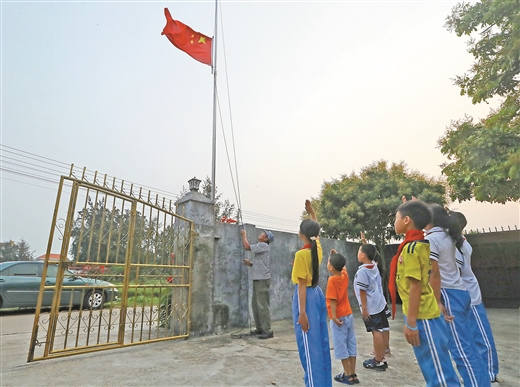 每当重要的日子,村里的孩子们会聚到骆文芳家参加升国旗仪式。