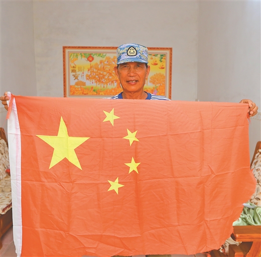 京族三岛位于东兴市江平镇,与越南隔海相望。在这个中国唯一的海洋民族——京族聚居地,有一位被大家称为“老旗手”的京族老人,他叫骆文芳,40多年前他成为村里第一个自发在家门口挂起五星红旗的人,此后数十年,他坚持将国旗在岛上高高挂起,一摞厚厚的国旗见证了他对祖国沉甸甸的爱。
