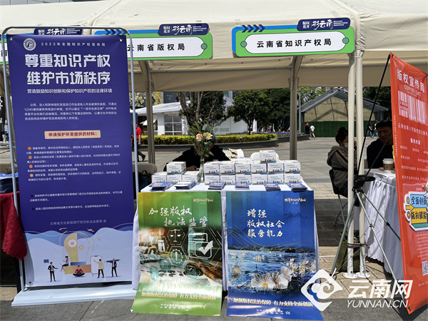 为持续加强版权宣传引导,不断增强版权保护力度,激发全省文化创新创造活力,在第23个世界知识产权日来临之际,4月26日,由云南省版权局、中共昆明市委宣传部主办的“2023年云南省暨昆明市知识产权宣传周版权宣传系列主题活动”在昆明市五华区南屏步行街广场启动。活动以“版权花开彩云南”为主题,聚焦云南省版权发展现状,展出省内外一批优秀版权作品,这场互动式、沉浸式的活动让版权知识可触、可感,更深入人心。