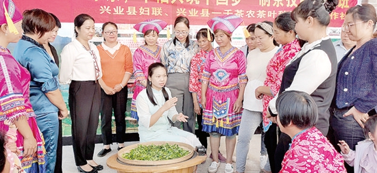 陈天华为群众授课,帮助她们提升制茶工艺技术。