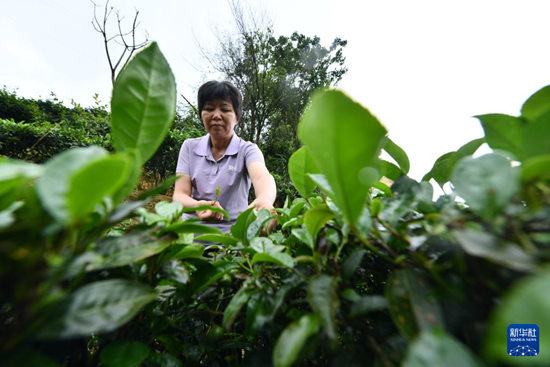 广西梧州市苍梧县六堡镇山坪村地处大山深处,是一个瑶族群众聚居的村寨。2008年,瑶族妇女祝雪兰当选为山坪村党支部书记。十多年来,在当地党委政府的支持下,祝雪兰带领群众修路,建楼,架电网,逐步改善生产生活条件。同时,作为六堡茶制作技艺自治区级代表性传承人,祝雪兰办起“茶园讲堂”,推广传统制茶技艺,带领村民成立多家六堡茶专业合作社,并采用“党支部+合作社+农户”的模式,种茶制茶售茶,带动周边各族群众共同发展六堡茶种植产业,助力群众增收致富。(新华社记者 黄孝邦 摄)