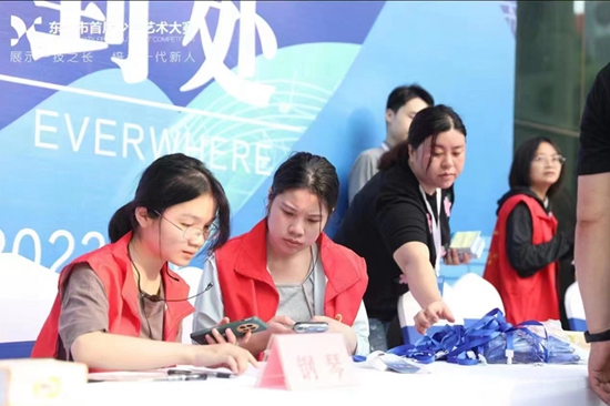 西部计划项目志愿者服务于2023年东兴市首届少年艺术大赛。共青团东兴市委供图