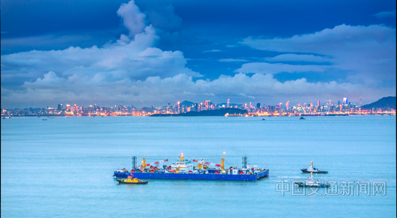 图为深中通道海沉管管隧道最后一个管节和最终接头正在浮运。