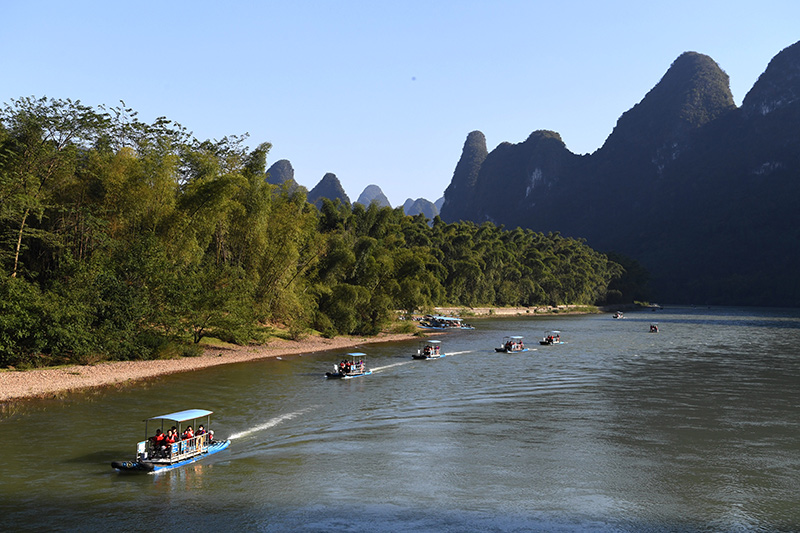 为了祖国天更蓝、地更绿、水更清。党的十八大以来,习近平总书记推动生态文明建设的足迹遍及神州大地:在重庆强调要把修复长江生态环境摆在压倒性位置,共抓大保护,不搞大开发;在山东强调扎实推进黄河大保护,确保黄河安澜;在贵州察看乌江生态环境和水质情况;在漓江之上关切桂林山水保护;在雪域高原叮嘱切实保护好地球第三极生态……