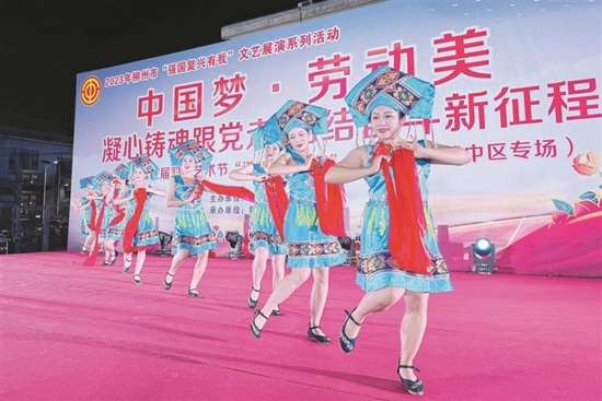 11月14日晚,柳州市柳柴赏石文化产业园人声鼎沸,2023年“中国梦·劳动美——凝心铸魂跟党走 团结奋斗新征程”柳州市职工艺术节“送文化下基层”(城中区专场)文艺演出活动在此举行,为200多名一线职工、农民工送上文化大餐。