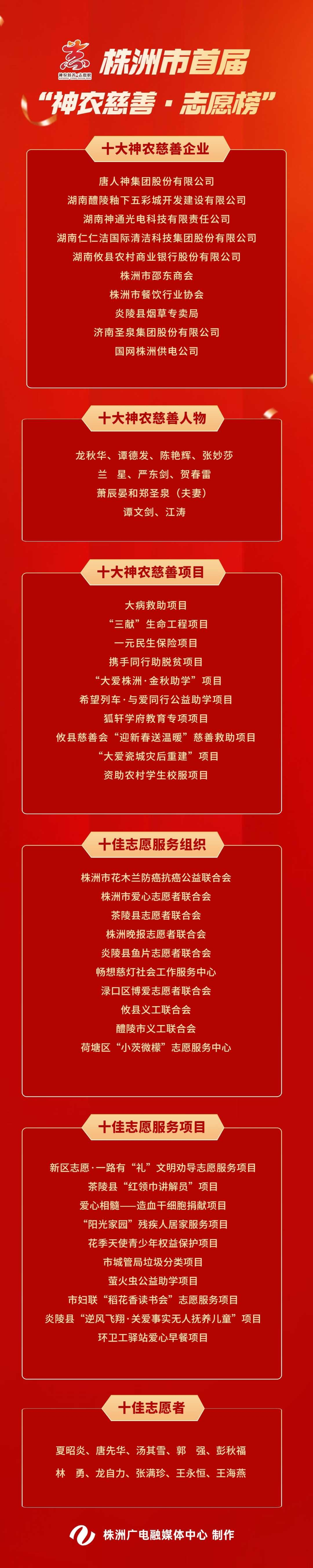 与爱同行,情暖株洲。今天下午,株洲市首届“神农慈善·志愿榜”发布盛典举行。市委书记曹慧泉出席并致辞,省民政厅二级巡视员廖国核,市领导胡长春、刘光跃、聂方红、杨英杰、江小忠,市人大常委会原主任、市慈善总会会长姜玉泉出席活动。