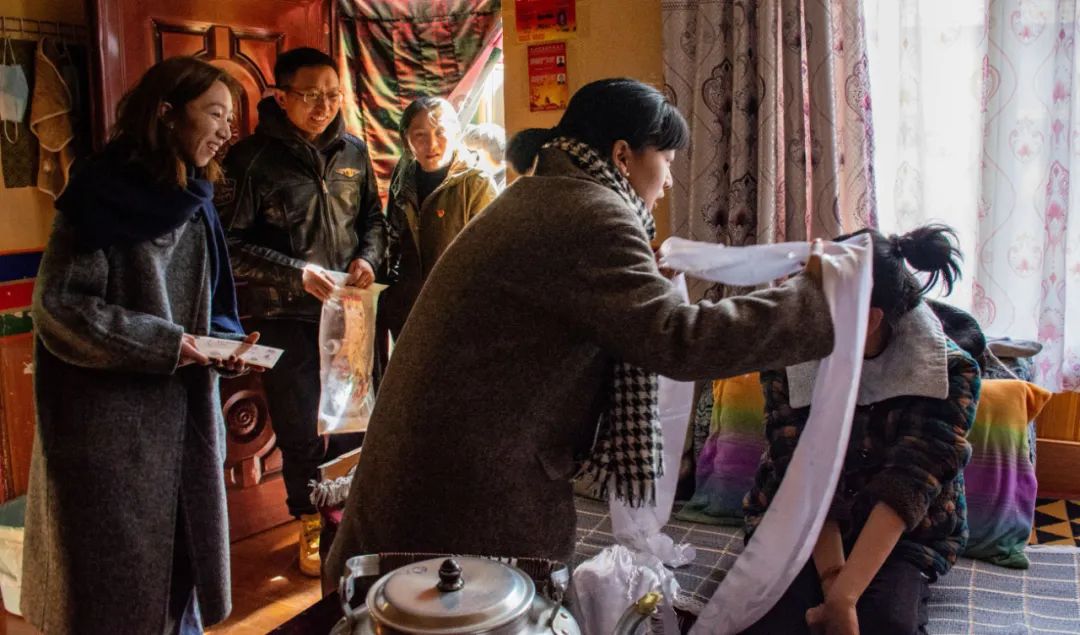 (一)前期准备活动开展前期,在祥和苑社区工作人员的支持下,堆龙德庆区东嘎街道祥和苑社区驻站社工逐一入户了解重残儿童家庭并确定五位慰问对象。本次入户的五位残障儿童家庭均为重残(残疾等级一级)儿童家庭,家庭经济收入偏低。在对接慰问家庭后,及时与西藏珠穆朗玛律所负责人沟通确定活动流程。(二)活动正式开展2023年2月18日上午,西藏珠穆朗玛律所党支部代表、东嘎街道驻站社工及社区工作人员逐一进行入户慰问。
