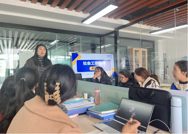 为进一步推进全市乡镇(街道)“双语”社会工作站建设和运营工作,提升专业服务水平,打通为民服务的“最后一公里”。2月17日上午,西藏星光社会工作服务中心(以下简称:西藏星光)项目负责人德庆玉珍对各街道的个案进行督导并对日常工作中遇到的问题进行指导。