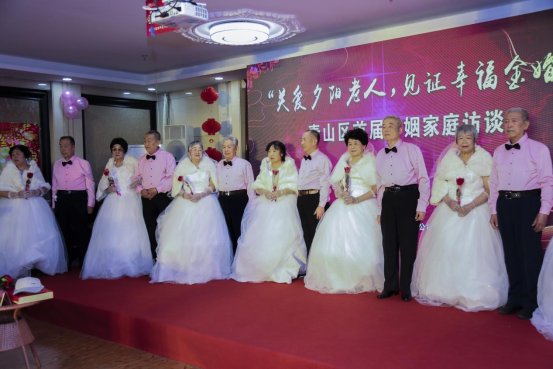 结婚颁证厅里金婚老人的幸福时刻
