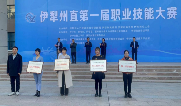本届大赛深入贯彻落实党的二十大精神和习近平总书记关于技能人才工作的重要指示精神,围绕新形势下“一老一小”开设的“安心养老”品牌养老护理赛项。大赛贴近真实的老年人生活场景、贯穿真实的服务内容和标准、取材养老服务一线真实的案例、还原选手日常真实的操作,办赛特色鲜明,实践导向凸显。来自州直11个县市的38名养老护理员精英同台竞技、交流切磋。这是一场青春养老人才的约会,为了一个共同的目标—守护夕阳。赛场上,每位选手挑战自我、奋勇拼搏、争取佳绩。比赛共评出金奖1名(李云霞、奎屯同心养老院)、银奖1名(姚一帆、奎屯鸿祥护理院)、铜奖1名(加依娜古丽·恩吐马克、昭苏县社会综合福利院)、优胜奖3名(高玉松、奎屯鸿祥护理院,阿依古丽·开仁别克、伊宁市社会福利院,阿布都艾帕尔·阿布都加帕、伊犁银河谷康养院)。赛场下,以赛促学、以学促干,持续推动伊犁州直养老服务队伍向专业化、职业化发展,不断满足老年人日益增长的多样化、多层次养老服务需求。2023年,伊犁州直各级民政部门大力推进技能人才队伍建设,组织养老护理员职业技能培训380人,做到养老护理员职业技能培训全覆盖。