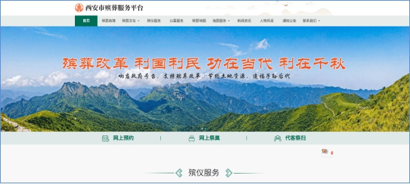 2022年4月12日,西安市民政局召开殡葬工作信息化建设专题会议,明确要建设一个以西安市民为受众群体,集“服务、宣传、监管”三大功能为一体的全市综合性殡葬服务管理平台,集纳政策宣传、信息发布、数据统计等多项功能,以满足群众预约祭扫、查询价格、网上祭扫、查看实景等需求。接下来,市民政局多次组织全市30余家殡葬服务机构召开平台建设调研座谈会,对各公墓网站的建设构架、内容呈现、运行效果、市民反馈以及知晓率等情况进行分析,2022年10月,“西安市殡葬服务平台”建成并正式投入运行。目前,全市所有殡葬服务单位全部在“殡葬服务平台”入驻,全方位保障群众各项殡葬服务需求。