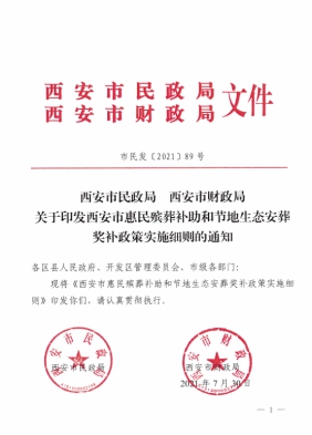《西安市惠民殡葬补助和节地生态安葬奖补政策》及《实施细则》