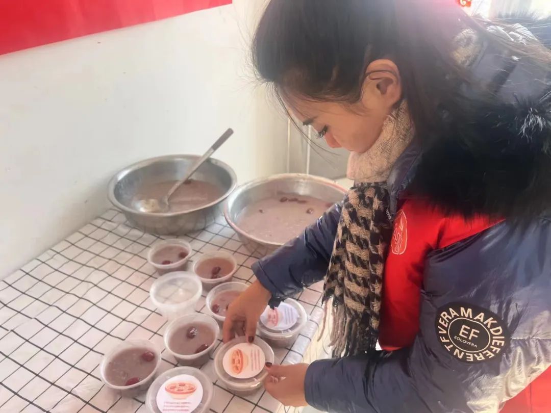 随后,志愿者们将精心熬制的腊八粥用餐盒进行了分装,送到村内的空巢、独居和不方便出行的老人家中,捎去了一份问候,送去了一份新春的祝福,老人们表示热腾腾的腊八粥捧在手里,捂热的不只是双手,更是内心,同时在冬日里感受到社区的关爱。