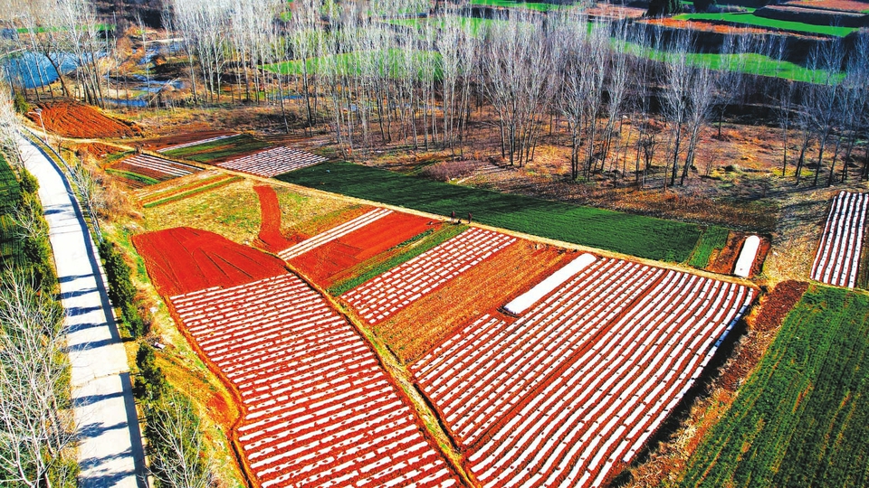 3月20日,垣曲县皋落乡倚亳村,耕作后的田间,宛如一幅美丽的画卷。该村坚持小麦生产和蔬菜种植,形成了粮菜两个基地。崔松良摄