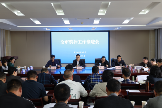 会议传达学习民政部部长陆治原同志莅眉调研讲话要求和全省殡葬领域行风建设会议、全省社会事务暨清明节祭扫服务保障工作会议精神,调度全市殡葬领域跨部门综合监管、生态安葬试点及火葬区范围调整后续工作等推进情况,安排部署全市殡葬领域行风建设和清明祭扫服务保障工作。