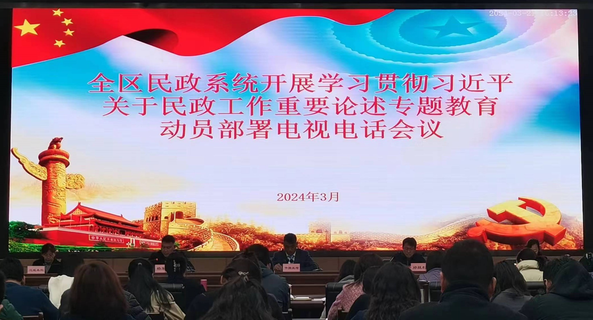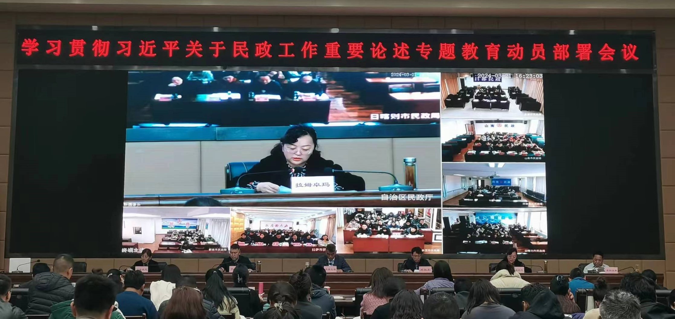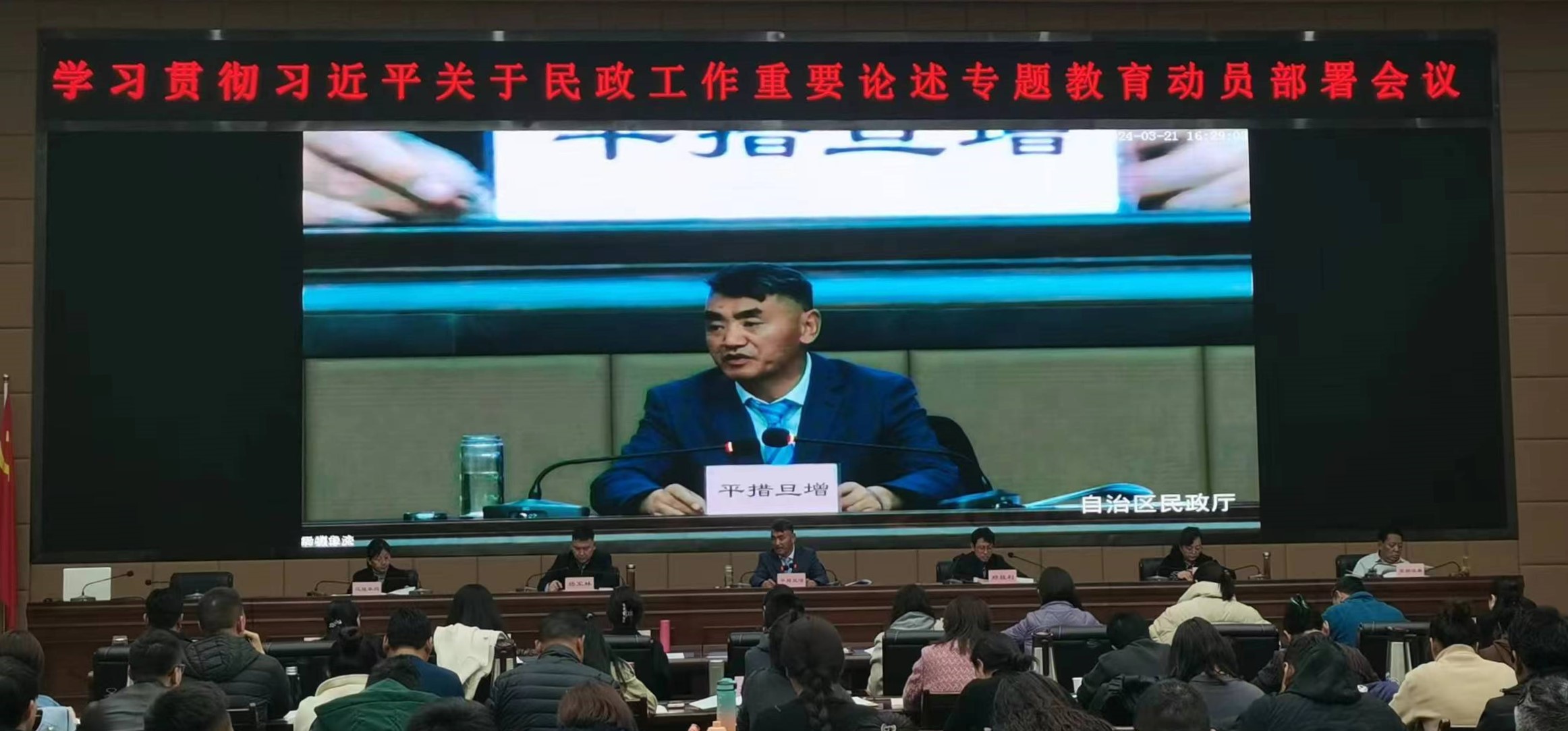 2024年3月21日下午,西藏自治区民政厅召开全区民政系统开展学习贯彻习近平关于民政工作重要论述专题教育动员部署会议,会议通过电视电话形式召开,全区民政系统党员干部参会。会议集中领学了习近平关于民政工作的重要论述节选内容,传达学习了国家民政部陆治原部长在民政部深入学习习近平总书记关于民政工作重要论述专题读书班上的讲话精神,自治区民政厅党组副书记、厅长平措旦增作了动员讲话。