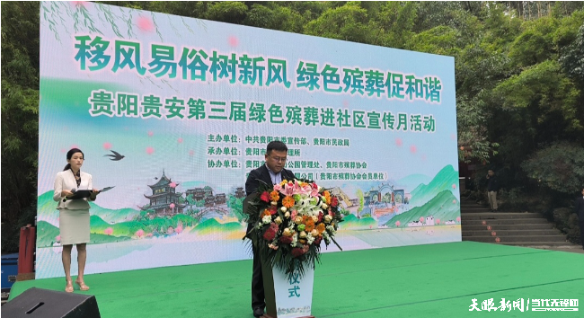启动仪式上,贵阳市民政局党委委员、副局长张楠致辞,向全体市民发出要践行移风易俗改革、厚植惠民利民情怀和争创文明安全示范的呼吁,呼吁全体市民用实际行动坚持节俭治丧、支持生态殡葬、选择绿色文明祭扫,并加强对身边人和周围群众的宣传引导,自觉抵制陈规陋俗,树立节俭、生态、人文、绿色殡葬新风。
