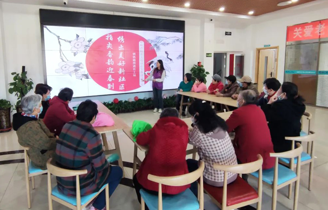 呼和浩特市钢铁路街道社工站联合呼和浩特市力信社会工作服务中心、咱家社区开展“指尖香韵迎春到,绣出美好新社区”主题活动,社工们组织社区居民参与学习传统刺绣技艺,丰富了居民的业余文化生活,为居民搭建了交流学习、增进理解的平台,有力提升了社区凝聚力,营造了社区居民参与创建社区文化的良好氛围。