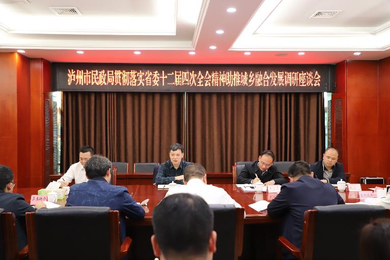 在随后召开的座谈会上,调研组听取了泸县深入贯彻落实省委十二届四次全会精神助推城乡融合发展实施方案,并围绕实施方案提出完善意见。