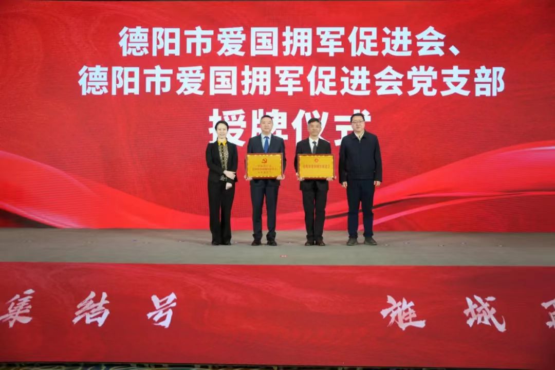 会上,宣读了市民政局关于同意成立德阳市爱国拥军促进会和德阳市爱国拥军促进会党支部的批复并举行授牌仪式,同时向会长、副会长、理事、监事单位和秘书长、个人会员代表授牌颁证,聘请雷志勇、易远军担任德阳市爱国拥军促进会名誉顾问。