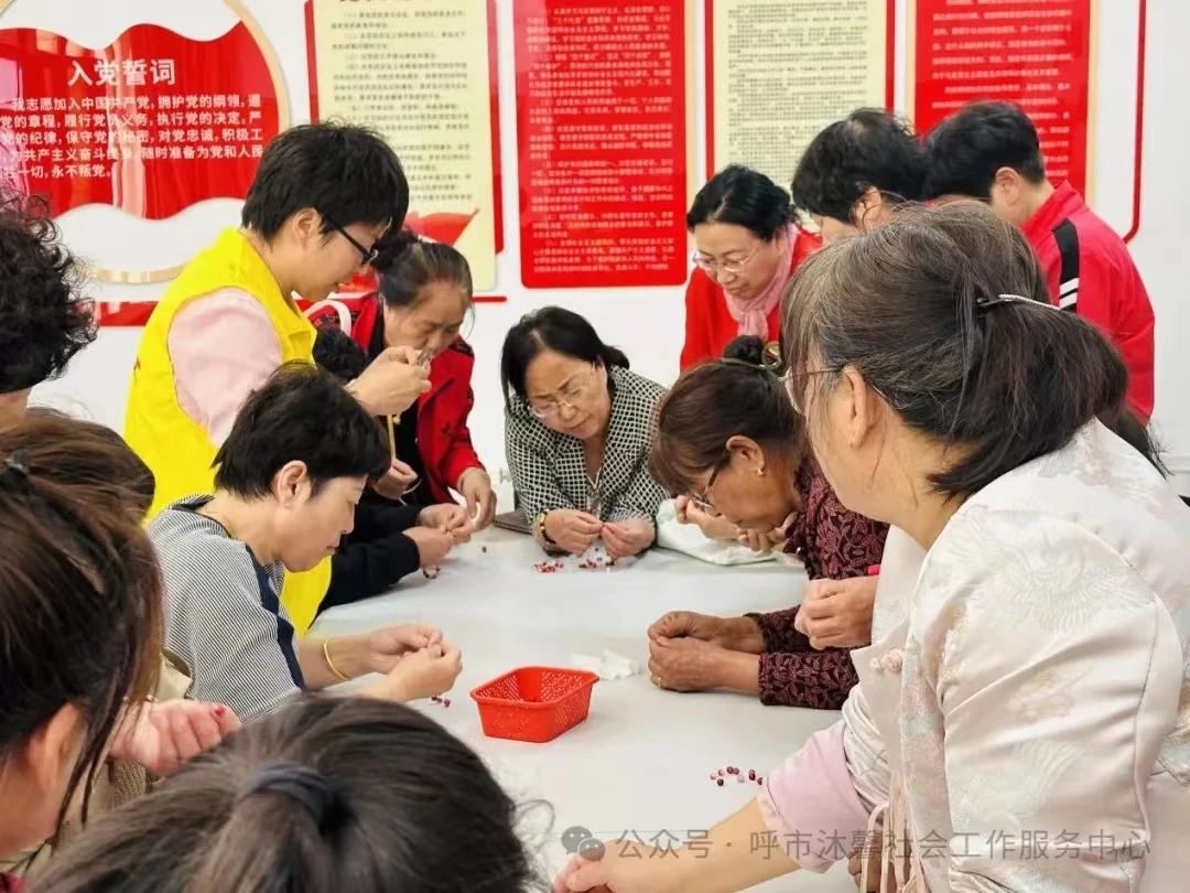 呼和浩特市土默特左旗沙尔沁镇社工站联合沙尔沁镇产业园社区开展“关爱女性 让健康与美丽同行”女性健康支持小组服务活动。社工组织女性居民们进行了串珠的手链制作,妇女们收获了一份由自己亲手制作的手链小作品给自己作为礼物,笑容展现在脸上,幸福感满满。