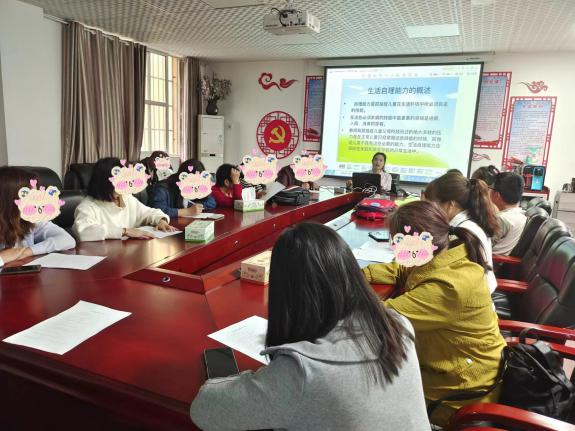 康复老师为家长们进行孤独症儿童生活自理能力训练知识的讲解,帮助家长正确地在家辅助孤独症儿童进行居家自理能力训练。