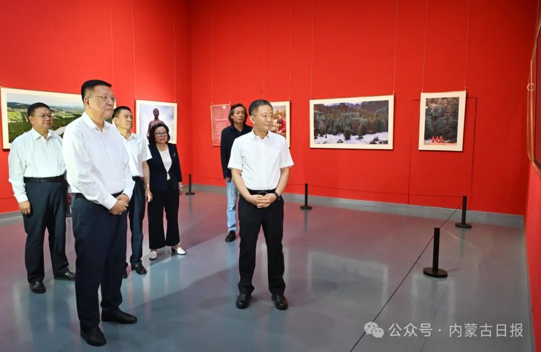 6月19日,孙绍骋来到内蒙古美术馆,参观“见证·同行”民革眼中的“三北”攻坚战纪实影像展。